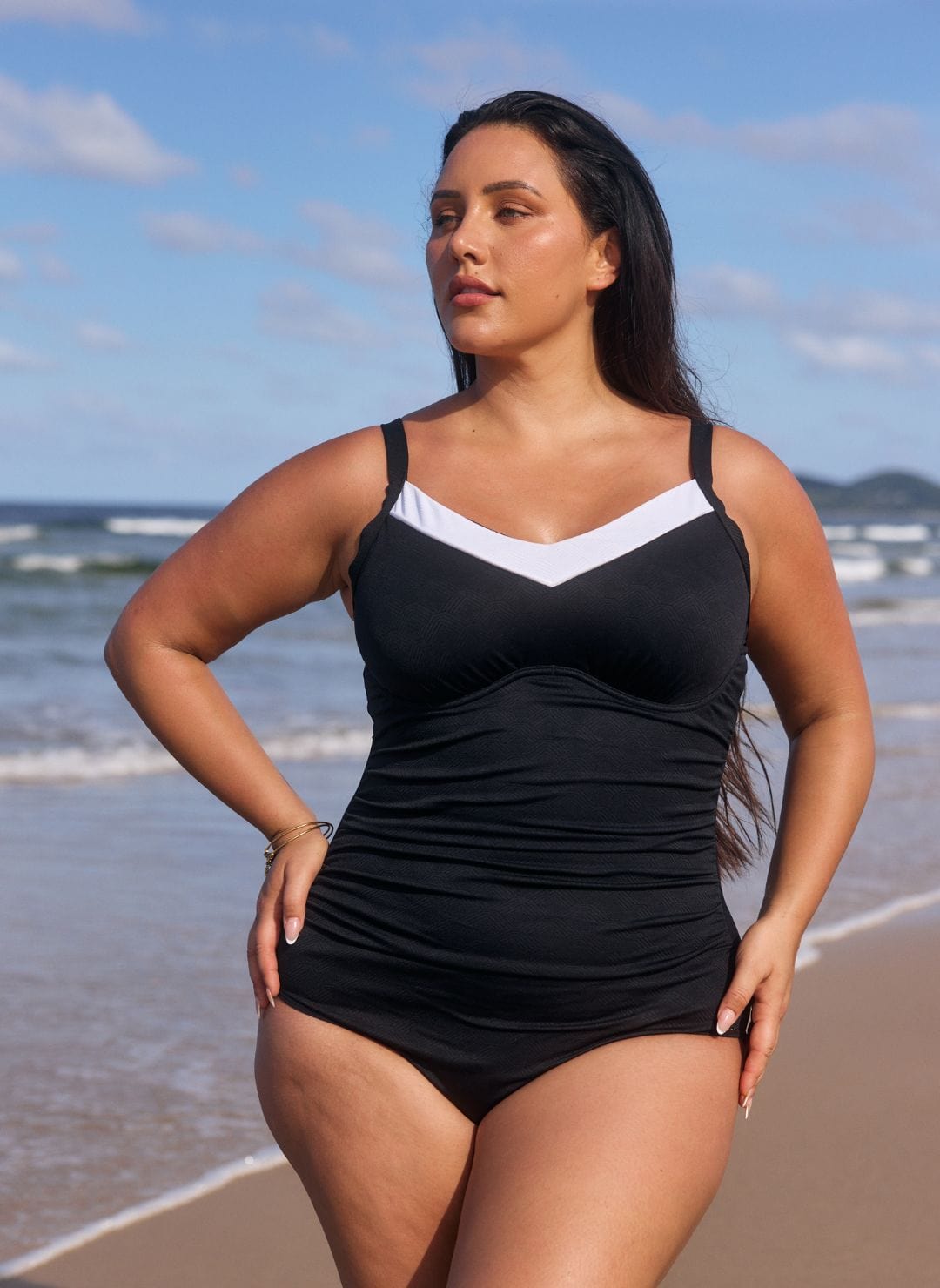 An underwire is a great support for women with a bigger bust. Underwire support can relieve the weight of a larger bust, taking the stress off your back. It can also lift the bust up and off your waist, giving you room to breath and showing off your shape. An underwire swimsuit with a soft cup or light foam contour allows your bust to have a more natural shape rather than the shape moulded cups give you.