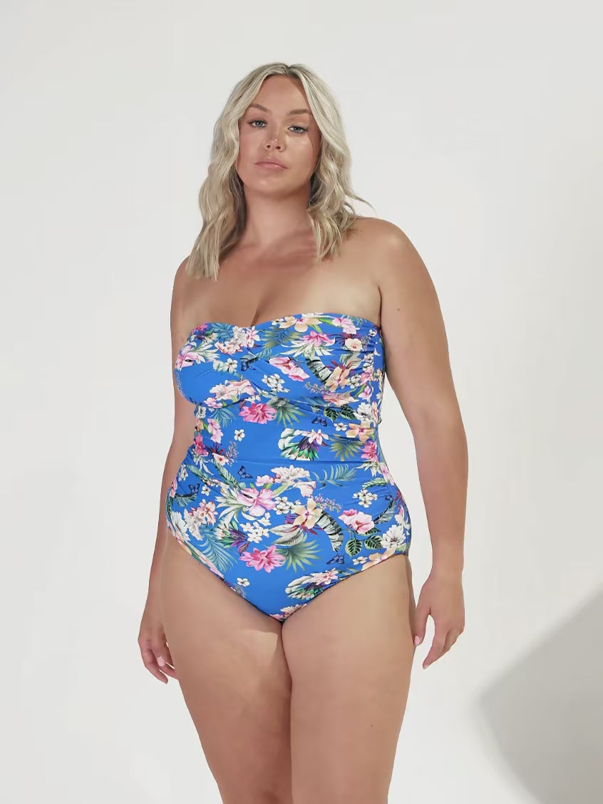 Introducing your must-have swimsuit of the season! Our most popular twist front bandeau one piece is now in stock, featuring the gorgeous Florida floral print. Its flattering colour palette is perfect for all skin tones, with ruching to hug your curves and accentuate your figure. Wear it with or without straps—this brilliant design offers support for bust sizes up to G cup. Don't miss your chance to discover why this swimsuit is a customer favourite!