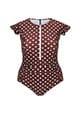 Chocolate Polka Dot Frill Sleeve One Piece