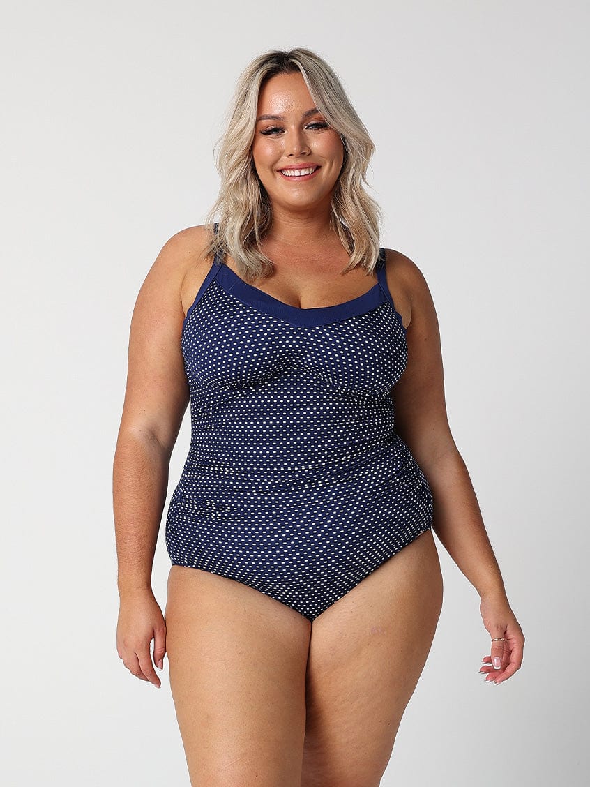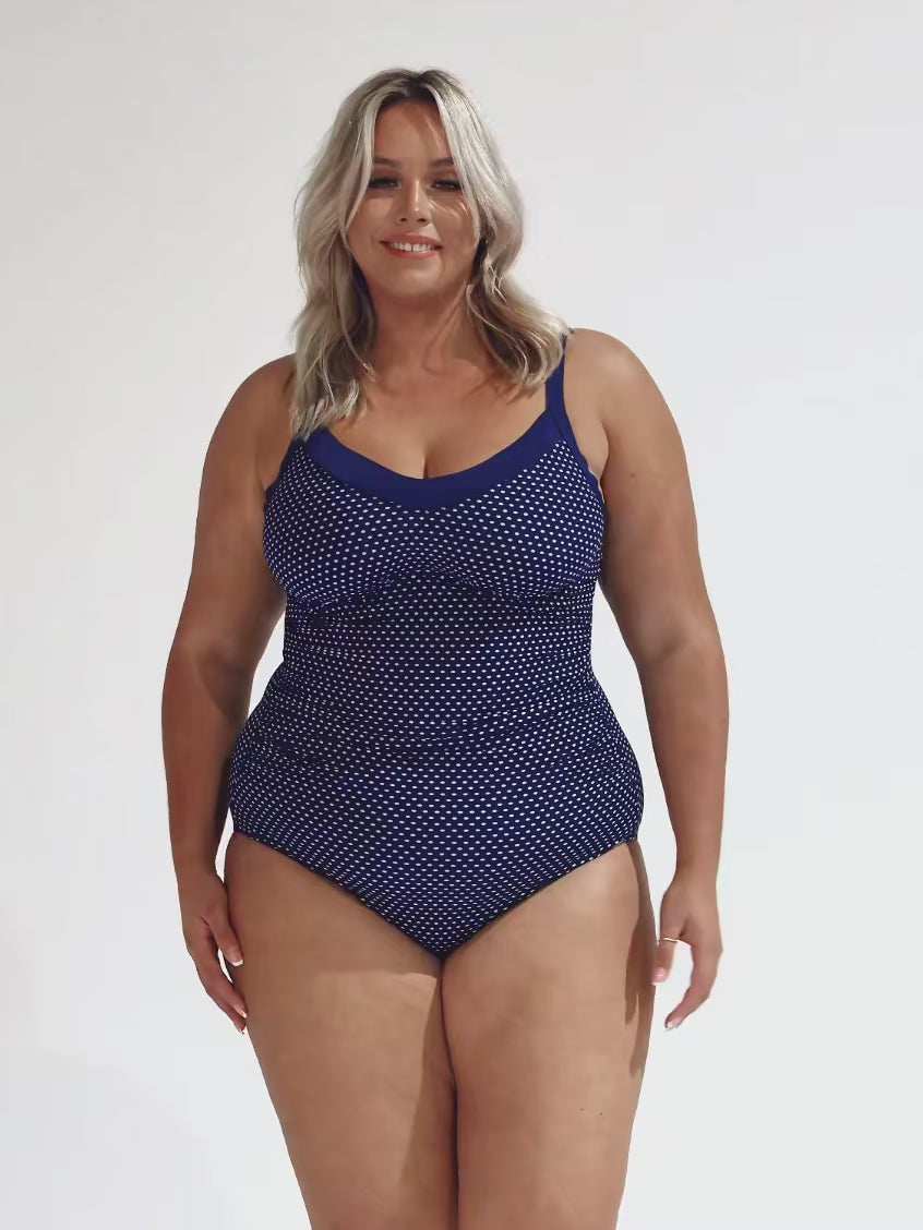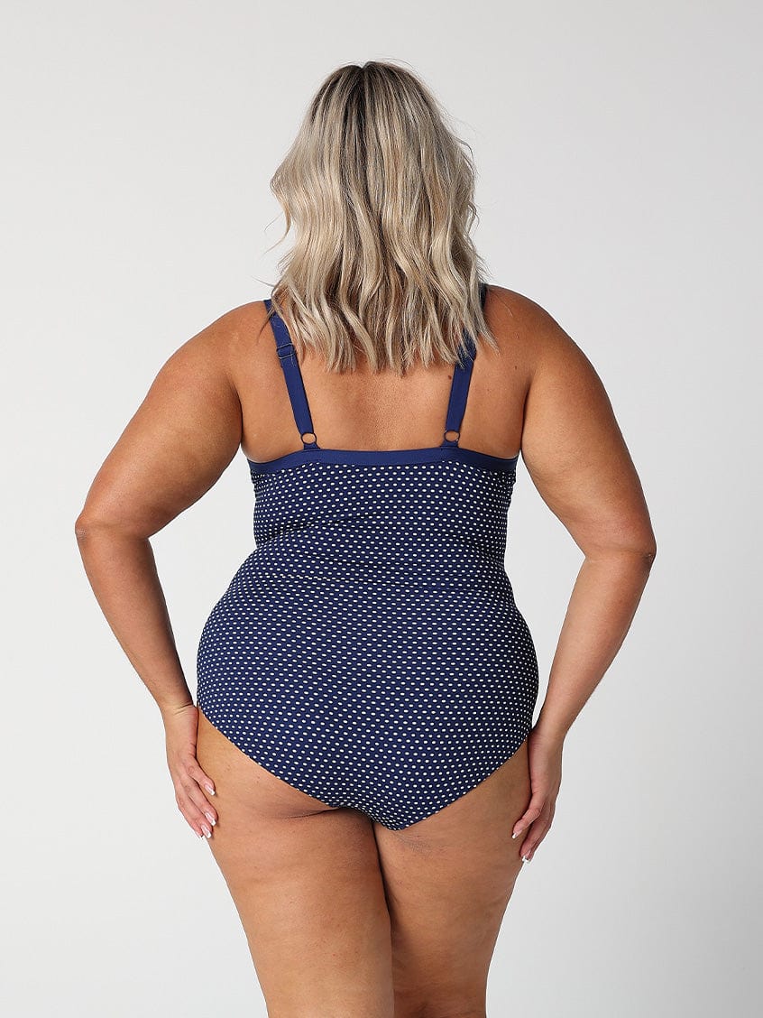 Chlorine Resistant Navy Plus Size Polka Dot Swimsuit