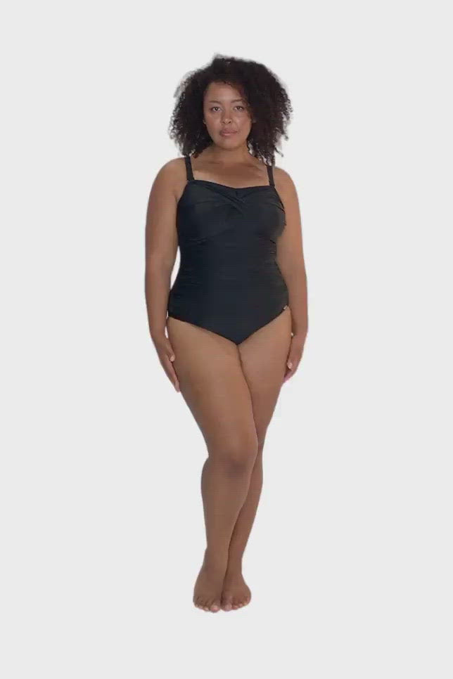If you're looking to buy plus size swimwear online from a local Australian brand, our Twist Front Bandeau One Piece is a fun, flexible and fitted style. This plus-size bathing suit is the ideal bather for any woman seeking a stylish and black one piece swimsuit. This chic and versatile strapless one piece is set to be your new favourite swimsuit for any beach outing or summer vacation.