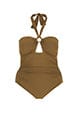 Khaki Textured Plus Size Halter Strapless Swimsuit